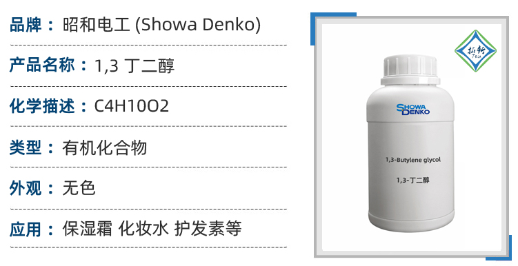 昭和电工丁二醇 相较于甘油和丙二醇较不油腻。相较于甘油较没有黏腻感。1,3-丁二醇 相较于甘油,更易被肌肤所吸收。1,3-丁二醇 相较于甘油和丙二醇,较无成膜性。1,3-丁二醇 相较于甘油,提供更平滑之肤感。